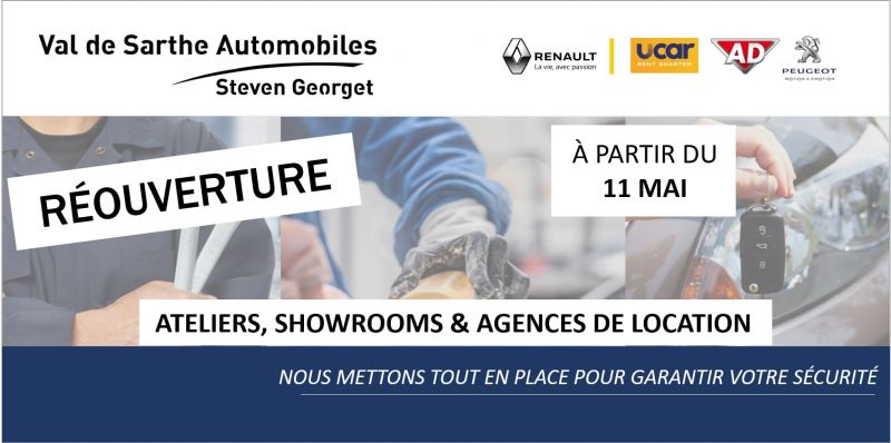 Réouverture en sécurité FEU VERT Nous avons le plaisir de vous confirmer la réouverture de l'ensemble de nos services et de nos différents sites à partir du lundi 11 mai. Nous avons tout mis en oeuvre afin de vous accueillir en toute sécurité et en appliquant et en respectant les gestes barrières. - Affichage des gestes barrières - Marquage au sol - Distance de 1m minimum entre les personnes - Nettoyage et désinfection de toute la concession - Plaque de plexiglas installée à l’accueil et dans les bureaux des équipes commerciales - Port de gants et d’un masque, lavage régulier des mains Merci de votre compréhension et respecter les gestes barrières : - Lavez-vous régulièrement les mains - Respectez une distance de 1 mètre entre les personnes - Si vous êtes malade, portez un masque et des gants Nous avons hâte de vous revoir. |