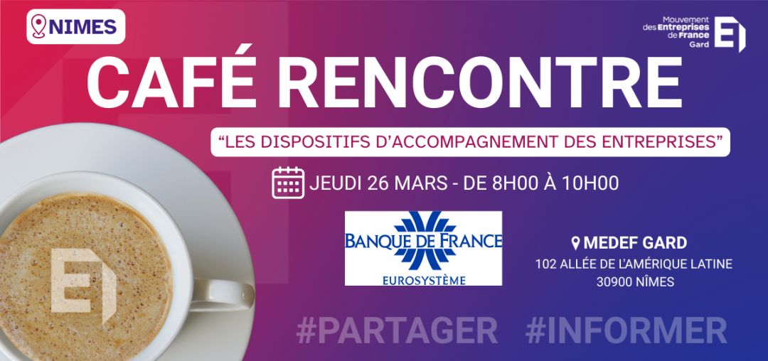 Le MEDEF Gard et la Banque de France vous invite à un Café Rencontre.