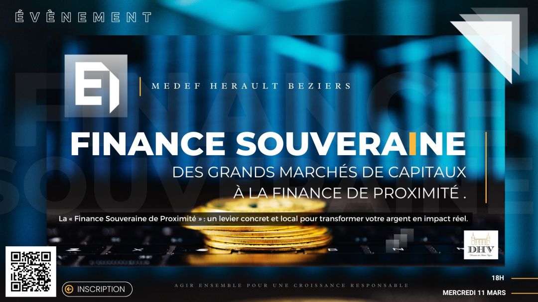 Le Medef Hérault Béziers vous invite à une soirée unique où votre épargne se transforme en levier de « finance souveraine de proximité » au service des projets de valeur locale et de croissance des entreprises de notre territoire.