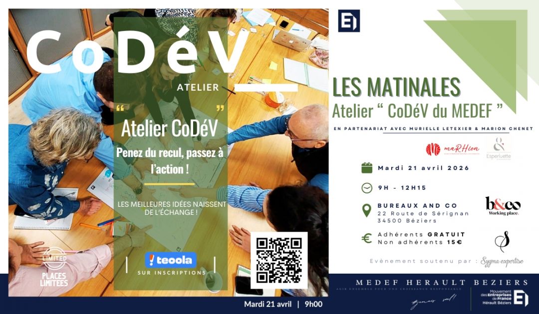 ⚠️ PLACES LIMITEES ! Inscription et paiement obligatoire en ligne jusqu’à J-1 : https://static.teoola.com/evt-7992-medefbeziers&lg=fr