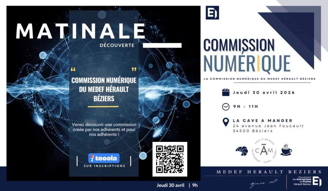 Le MEDEF Hérault Béziers dégaine ses experts et vous invite à une matinale conviviale pour découvrir sa Commission Numérique ! 😁
