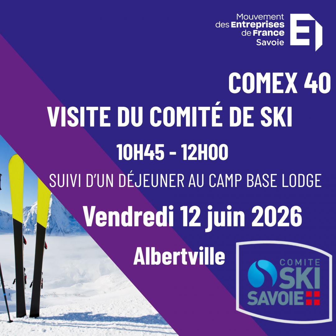 Dans la continuité de ses travaux autour des Jeux Olympiques 2030, le COMEX40 du MEDEF Savoie vous propose une visite exceptionnelle du Comité de Ski de Savoie à Albertville.